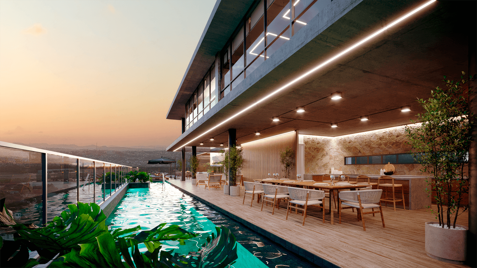 Piscina com Raia, Prainha e Hidro | Deck Gourmet | Sauna | Lounge Compartilhado Sunset | Wine Club Academia Panorâmica | Terraço Descoberto | Salão de Festas Gourmet | Coworking | Brinquedoteca Playground | Pet Place | Pet Wash | Lavanderia Compartilhada | Self Market | Lockers | Bicicletário